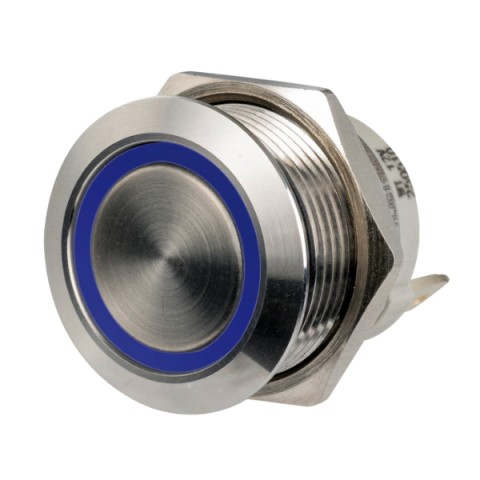 FLAT STAINLESS STEEL ON-OFF SWITCH 12/24V WITH WHITE LED SPRING (14.315.05)